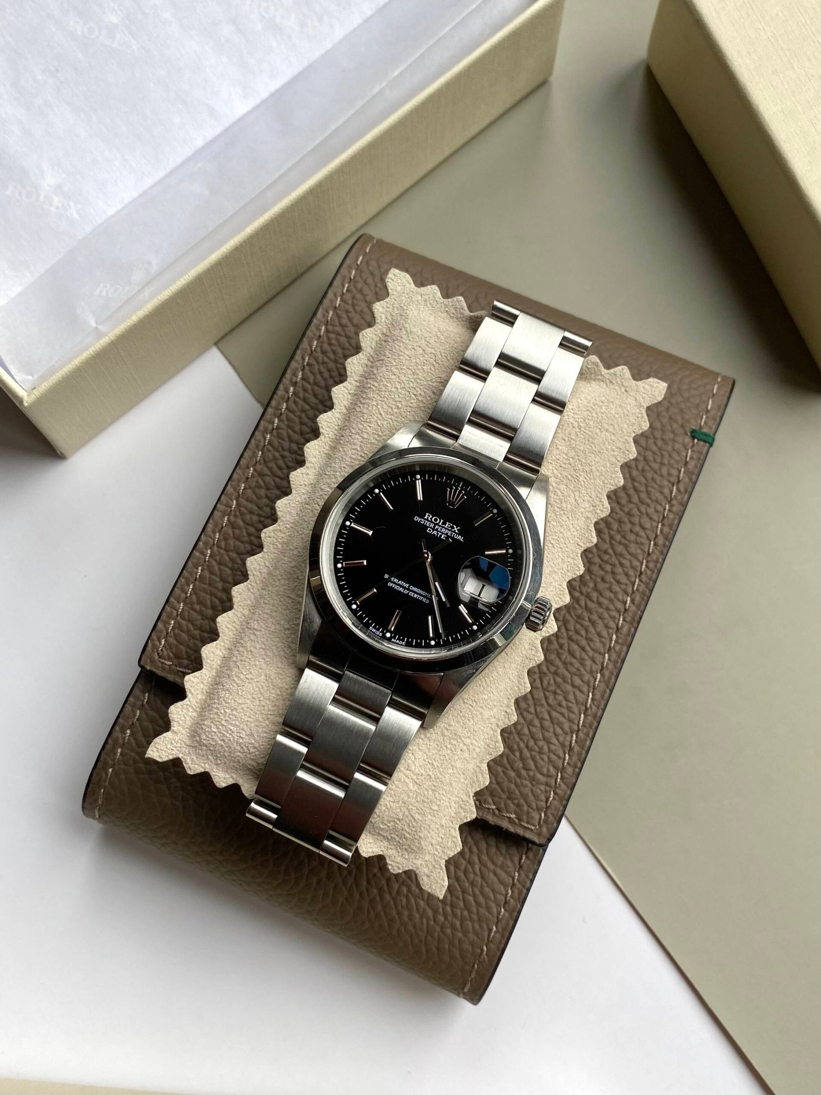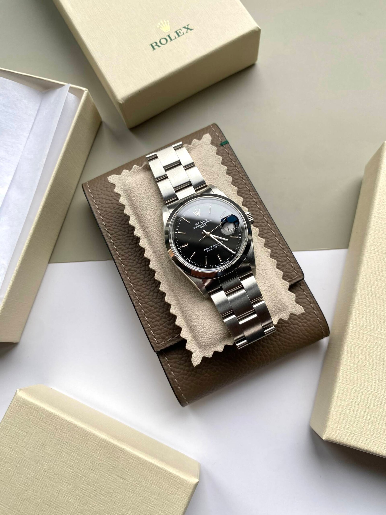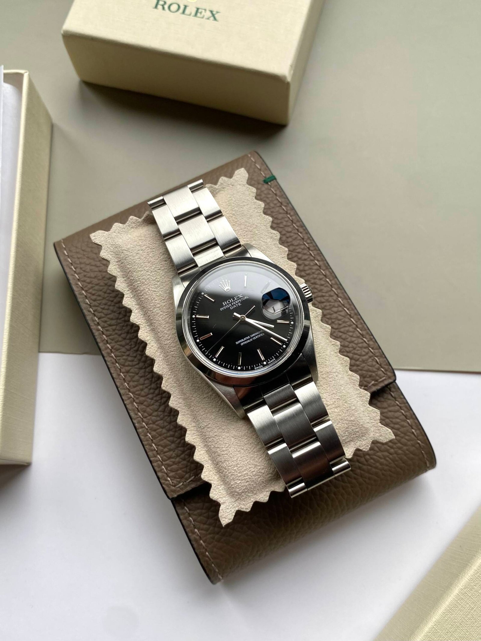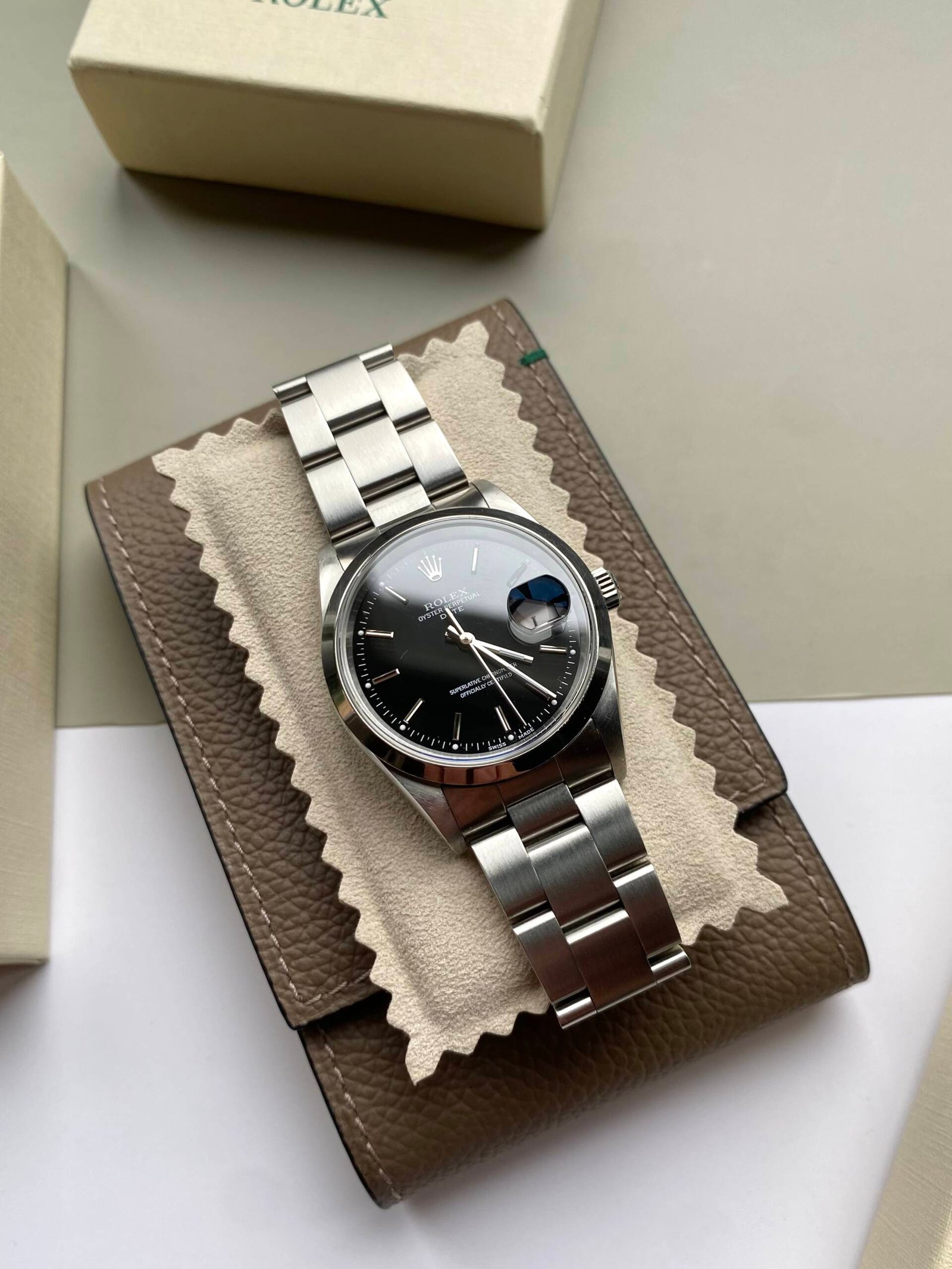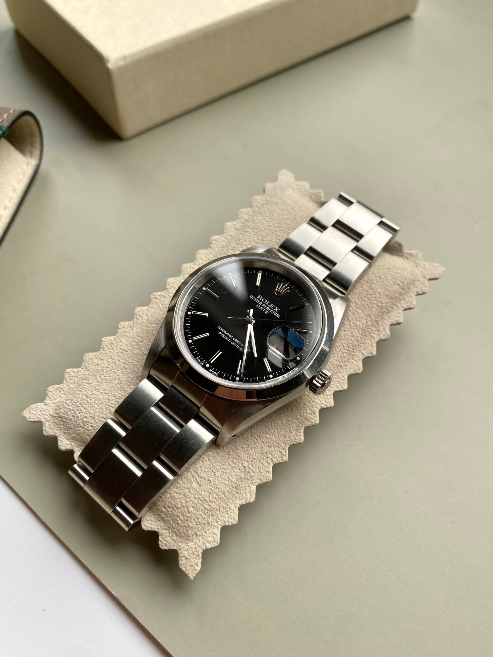 Rolex Oyster Perpetual Date ref. 15200 uit 1991, compleet met originele papieren – een zeldzame vondst voor verzamelaars en liefhebbers van klassieke Rolex-modellen.